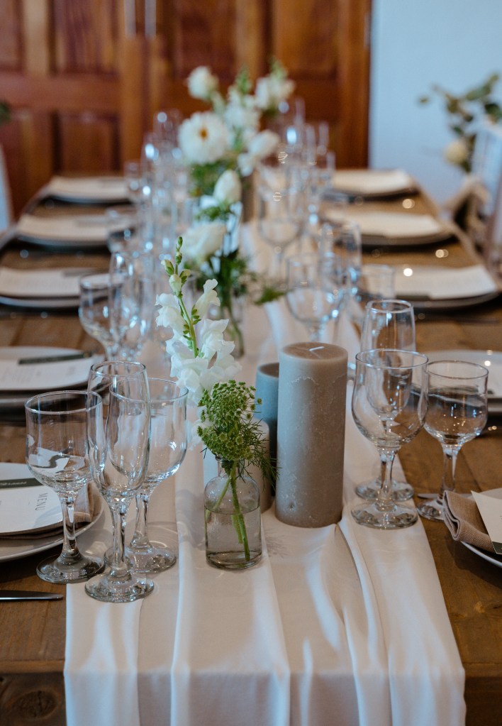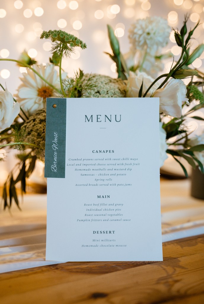 I had an amazing time working at the wedding and was also fortunate to enjoy it as a guest. Close friends and family contributed their talents to create stunning flowers and décor. The colour scheme of greens and white was so elegant—it truly stood out! Sarah’s dress and bouquet were absolute show-stoppers, and she looked incredible.